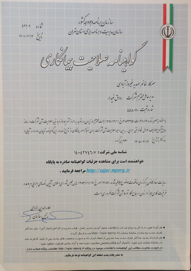 شرکت رواق فیدار در سال 1393 با هدف ارائه خدمات پیمانکاری در حوزههای ساخت و ساز، راهسازی و پروژههای صنعتی تأسیس شده و با بهرهگیری از تیمی متخصص و متعهد، همواره به دنبال ارائه خدمات با کیفیت و کسب رضایت کارفرمایان بوده است.